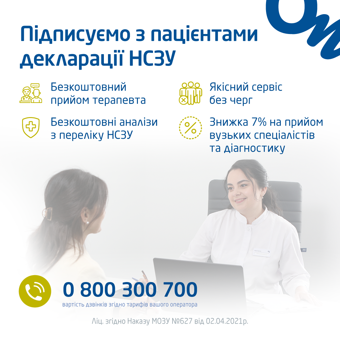 У медичному центрі «ОН Клінік Кропивницький» можна підписати декларацію з сімейним лікарем. Запис на прийом ведеться цілодобово.